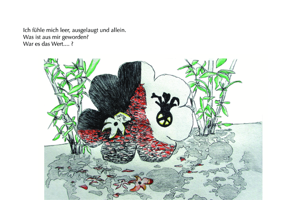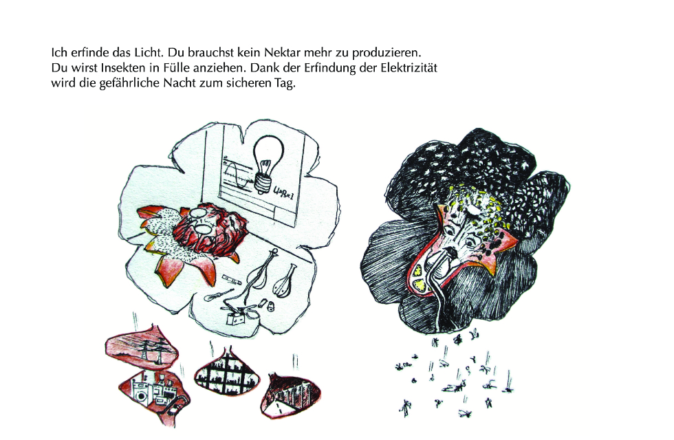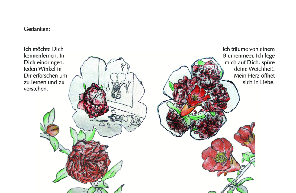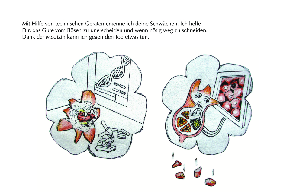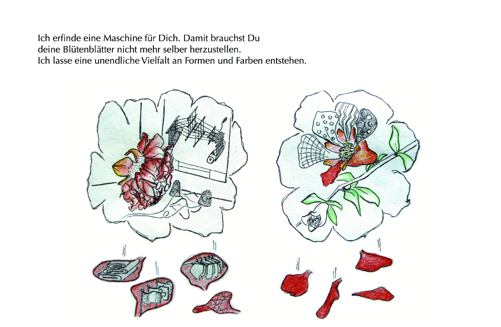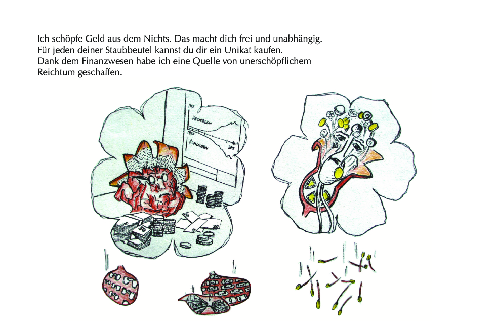 Die Geschichte entstand auf grund der Beobachtung, dass es beim Granatapfel männliche und weibliche (zwittrige) Pflanzen gibt. Die Blüten der männlichen Pflanz bestehen nur aus Blütenblätter und sind wunderschön. Die “weiblichen” Blüten enthalten sowohl männliche als auch weibliche Fortpflanzungsorgane und entwickeln sich nach erfolgreicher Bestäubung zu Früchten.