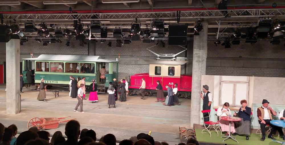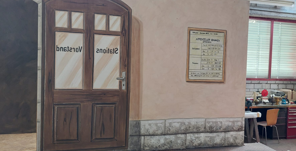 Für die Theatergesellschaft Appenzell entstanden für das Theater Bahn frei! zum 150-Jahr-Jubiläum der Appenzeller Bahnen 6 Bühnenbilder.